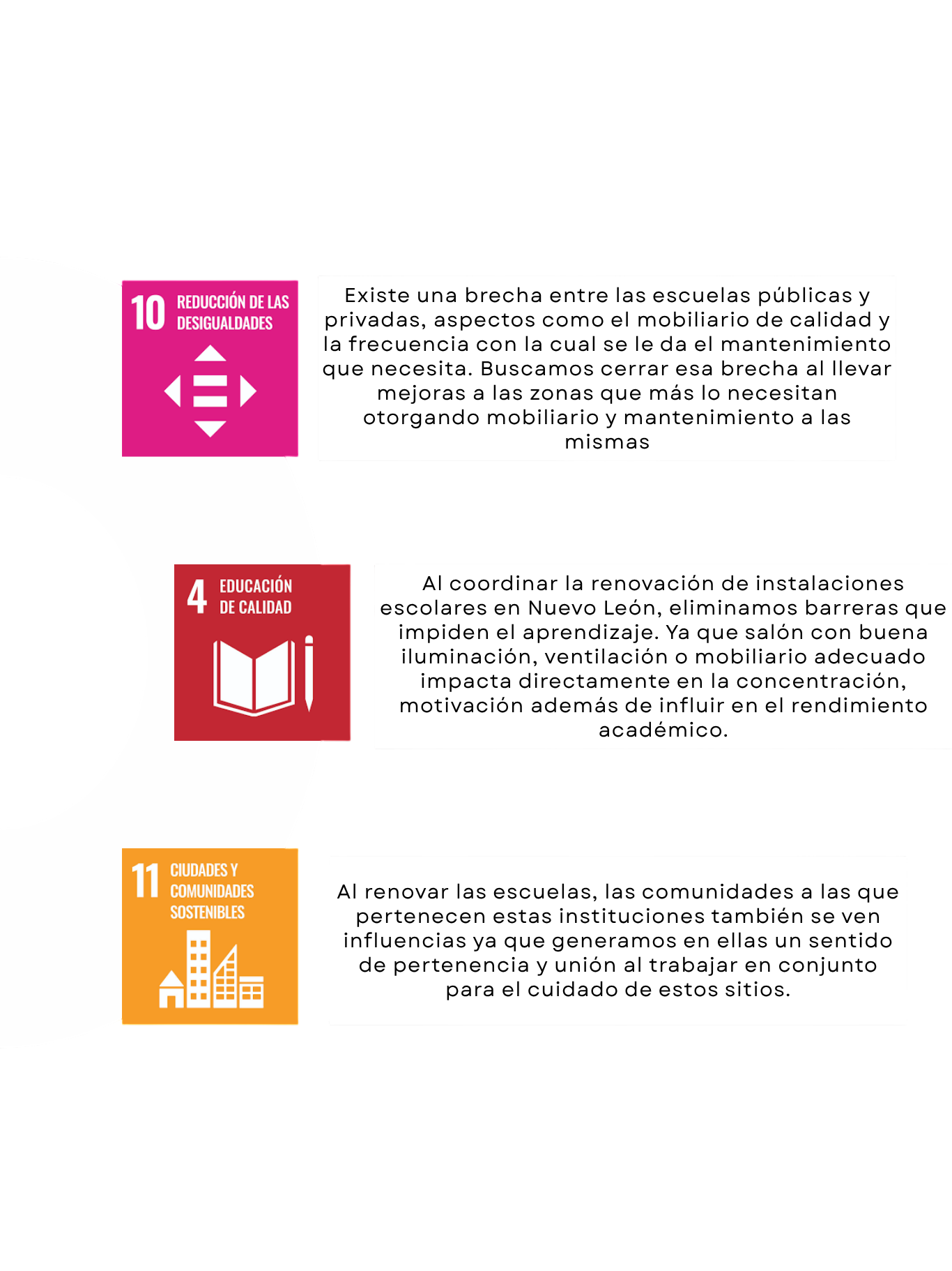 El proyecto esta enfocado en mejorar la calidad de aprendizaje de nivel primaria/secundaria, esto por medio del mantenimiento de las instituciones, que normalmente no estan en perfectas condiciones, lo que en ocasiones, gradualmente genera el aprovechamiento académico no esperado por los estudiantes.
